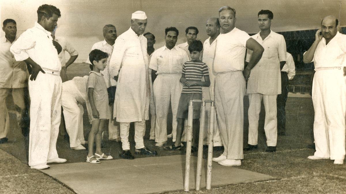 The President, Dr. Rajendra Prasad, a great lover of sports, arrived by the front lane. I presented the two teams to him. Dr. Radhakrishnan put on the cricket cap for a change. The two captains had to go out to the field for the toss. Nehru, the Harrovian, inspected the pitch and Tony commentated on the ongoings. A gold sovereign donated by [Ramnath] Podar, the left-hand bowler, decided in Nehru’s favour. Majithia and M.K. Krishna thrashed the bowling. An Indian crowd is not interested in the finer points of cricket. They want boundaries. Majithia gave them the boundaries. The spectators weren’t really interested in cricket. They only wanted to see the national hero in action. I put him in with Gopalan, who had never played cricket in his life.