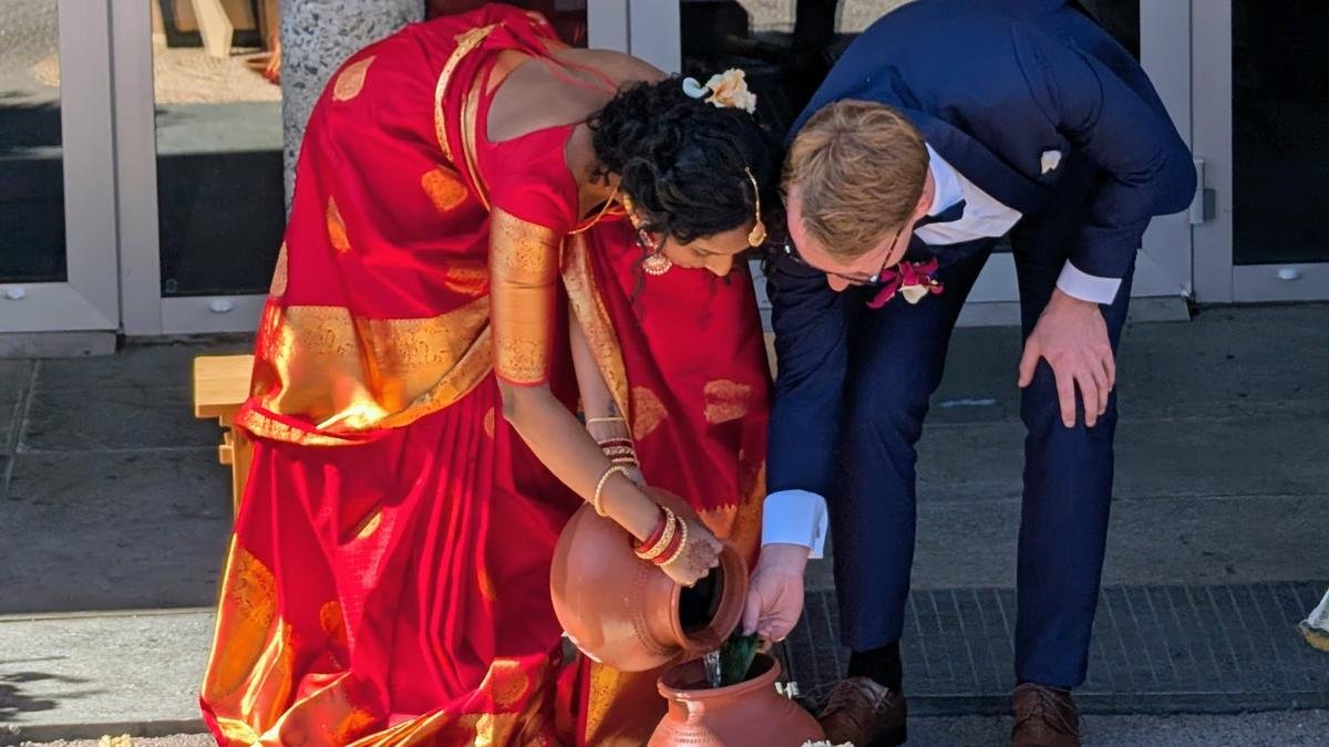 When you think of a quintessential Tamil wedding, what comes to mind? Does it involve a male priest and a trial by the fire? Supanki, an Eelam Tamil refugee whose family fled to Canada, said that she looked into some Tamil texts and attempted to re-conceptualise a format that involves practices from the Sangam literature and Tolkappiyam. In her style, there will be no sacrificial fire. They will also involve the use of the parai and conch, two instruments that are not traditionally used in weddings because they are often associated with the Scheduled Caste community and are played during death rituals.