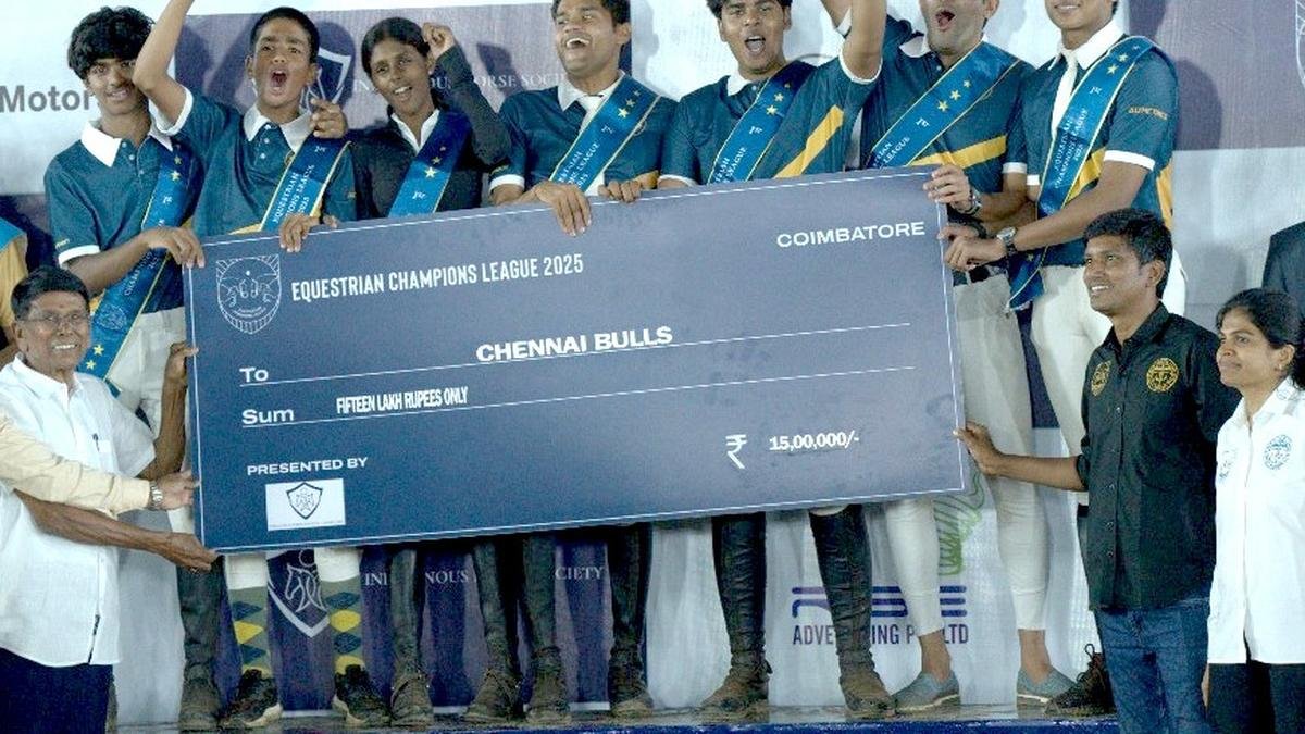 Chennai Bulls tallied 109 points for the top spot in the inaugural edition of the Equestrian Champions League, the country’s biggest show jumping league, organised by Equine Sports India Federation and Indigenous Horse Society, Tamil Nadu, at Equestrian Crest here on Sunday night.
