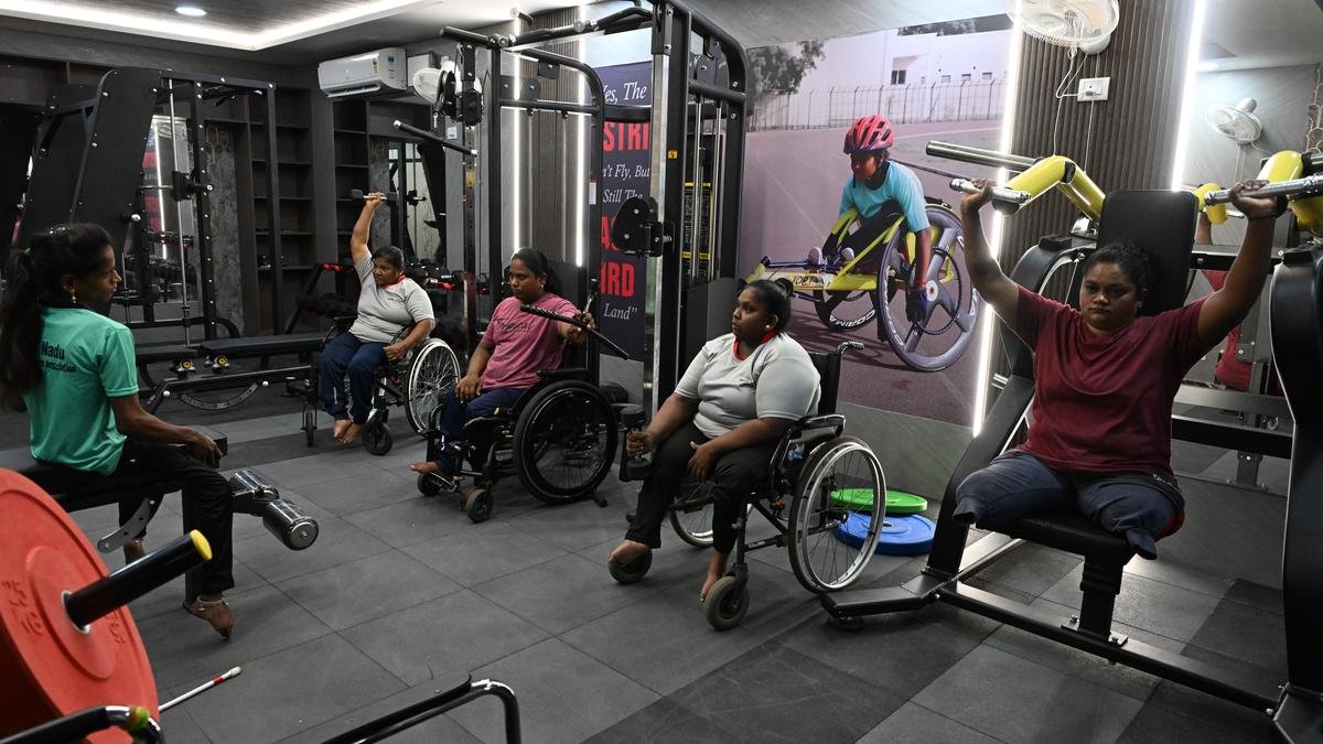 M. Nathiya swiftly pulls one side of the cable crossover machine weighing over six kg and proceeds to pull the other, grunting with each effort. Seated in her wheelchair, in the gym for women with disabilities, she soon falls into the rhythm of her training.