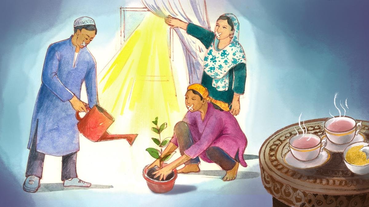 Phuphee went over to Shama and held her hands in her own until she started to calm down. Phuphee then took off her keep and wrapped it around Shama and led her into the house. She asked the mother-in-law to make a cup of nun chai with a dollop of ghee. From her pocket, she handed her a small packet with makkai soatt and instructed her to put it in the tea. Phuphee and Shama went upstairs and an hour later, Phuphee emerged on her own.
