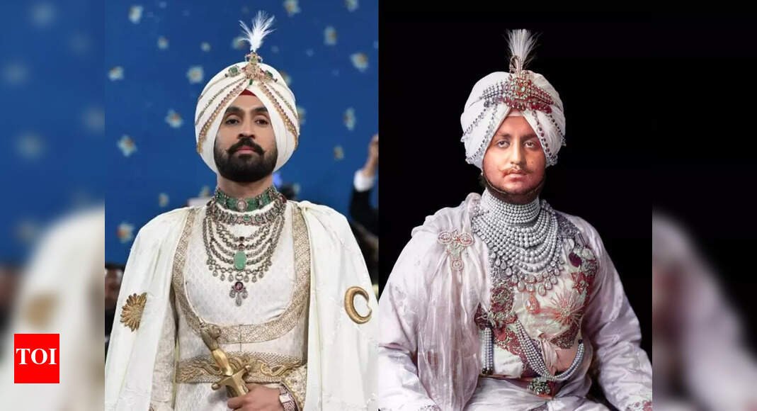 Before we dive into the bling saga, let’s talk about the fit. Diljit showed up in a custom ivory ensemble inspired by royal Sikh attire – a long kurta and draped tehmat, paired with a richly embroidered cape inscribed with Gurmukhi script. His signature turban and a traditional sword completed the look, cementing his status as both a cultural ambassador and a fashion risk-taker. It was bold, unapologetically desi, and deeply meaningful.