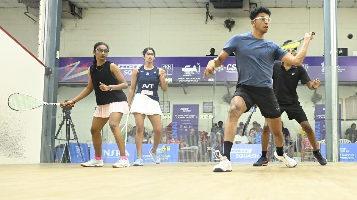 Women: Anahat Singh & Joshna Chinappa bt Nirupama Dubey & Shameena Riaz 11-10, 11-3; Pooja Arthi & S. Rathika bt Ananya Narayan & Anjali Semwal 11-6, 11-6.