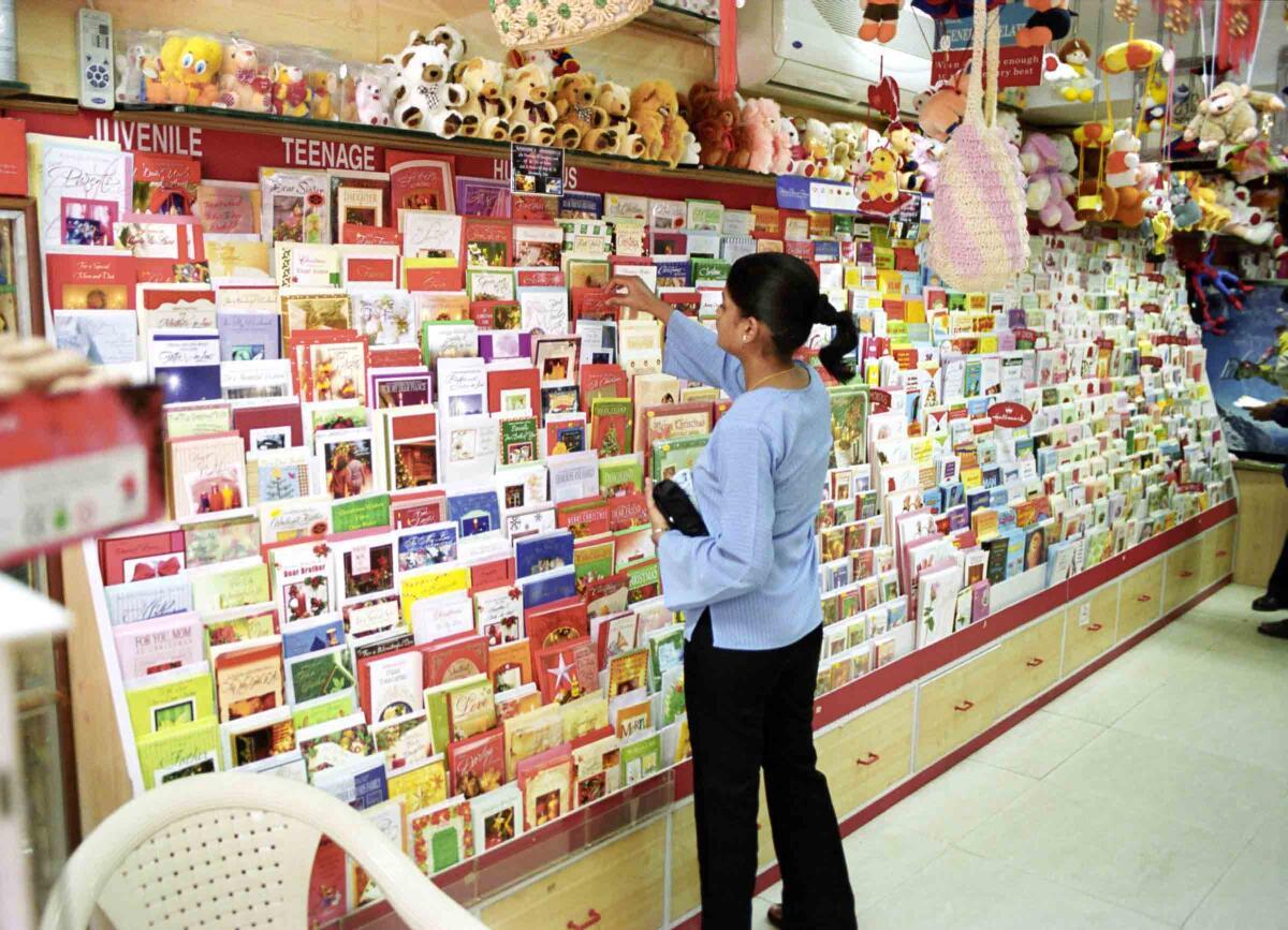 A shopper buying Christmas cards