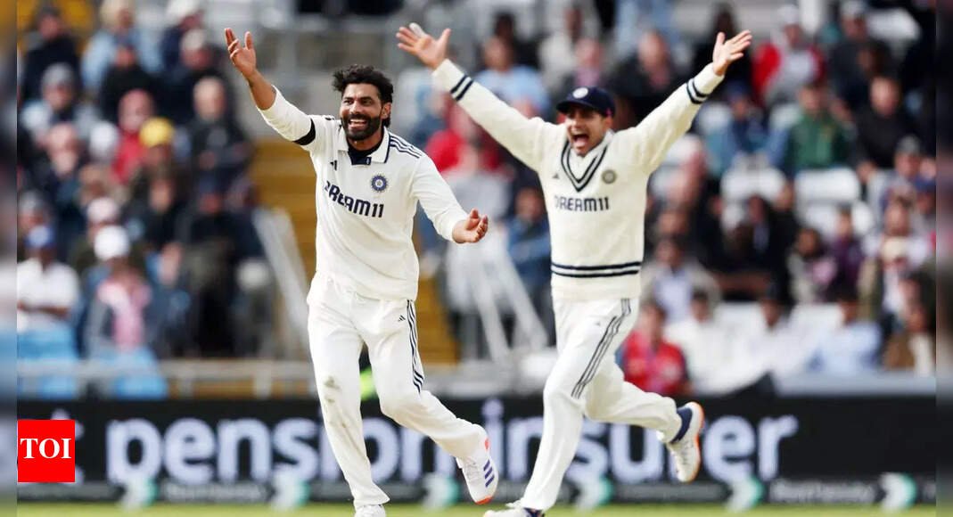 NEW DELHI: Experience counts — especially when a seasoned player knows how to control the tempo in high-pressure situations. On the final day of the second Test at Edgbaston, with India chasing a historic win, one such subtle but crucial moment played out during the morning session.India were looking to break the partnership between Ben Stokes and Jamie Smith when Ravindra Jadeja was handed the ball for the final over before lunch. He had a brief discussion with captain Shubman Gill, and then cleverly bowled his six deliveries in under 100 seconds, not allowing Smith any time to settle at the crease. The rapid over meant that India had time for one more before the lunch break.Seemingly as per plan, Gill tossed the ball to Washington Sundar for the bonus over — a calculated gamble that paid off immediately.On the final delivery before lunch, Sundar removed England captain Ben Stokes, dealing a massive blow to the hosts. Stokes’ dismissal left England reeling at 153/6, with India needing just four more wickets to seal their first-ever Test win at Edgbaston.After the wicket, Jadeja was seen high-fiving an ecstatic Gill — a moment that summed up the planning and execution behind the dismissal.WATCH: On a typically unpredictable English day, heavy cloud cover and intermittent rain gave way to bright sunshine. Play started after a 1 hour 40-minute delay, leaving India with 80 overs to bowl out England, who began the day at 72 for 3, chasing an improbable 608.Prasidh Krishna opened the bowling with Akash Deep, who stood out in the morning session. For the first time in the high-scoring Test, the pitch showed signs of wear, and Akash Deep extracted sharp seam movement off the surface. Surprisingly, Mohammed Siraj did not share the new ball with him.Akash Deep struck in his second over, cleaning up Ollie Pope as the batter chopped on. In his very next over, he sent down a vicious nip-backer that hit a crack and trapped Harry Brook lbw — a near-unplayable delivery that left England rattled.With that spell, Akash Deep likely sealed his place for the Lord’s Test, showcasing masterful control with the new ball. Krishna didn’t take a wicket but played a valuable holding role from the other end.