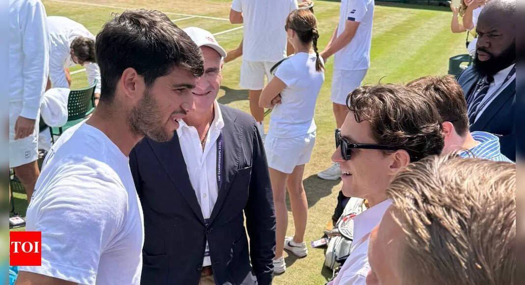 Tennis star Carlos Alcaraz and actor Tom Holland sparked excitement among fans after discussing a potential golf match during the actor’s visit to Wimbledon on Tuesday. The conversation occurred during Alcaraz’s practice session before his quarterfinal match against Cameron Norrie, which he won 6-2, 6-3, 6-3.The two-time defending Wimbledon champion engaged in a friendly conversation with the Spider-Man actor, who was present to watch the practice session.In a video published on Wimbledon’s official X handle, Alcaraz initiated the golf discussion by complimenting Holland’s swing.“Tom! I saw you playing golf as well. Good swing, good swing, eh?” Alcaraz said in the video, to which Holland immediately responded, “We should play!”