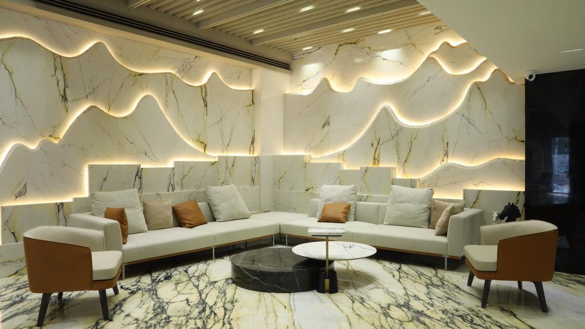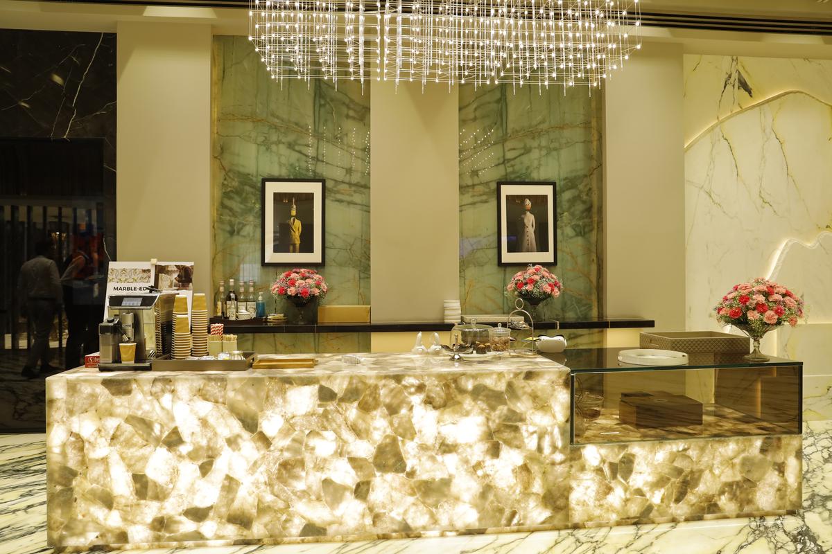 “Grand facades transform walls and surfaces into immersive, sculptural backdrops that feel both refined and experiential. In other parts of the office, backlit sculptural elements have been crafted from onyx, a naturally translucent material. This ensures a striking dialogue between light and stone at every turn,” says Rajesh Bhandari, director of A-Class Marble, located in New Delhi.