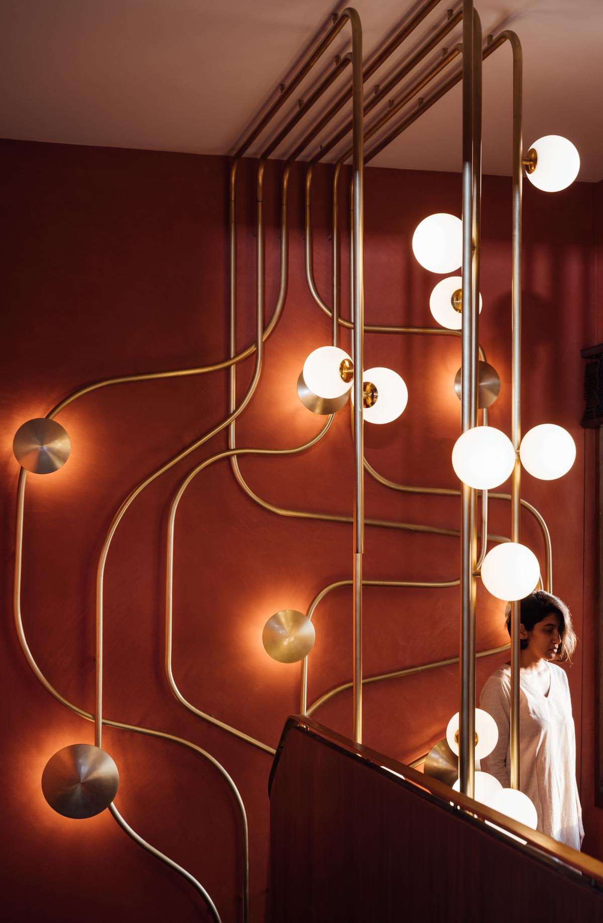 Use of certain materials involves multiple challenges. For example, brass being a relatively soft metal, brass demands precision during bending to achieve the intended curves without compromising structural stability. Integrating electrical conduits within these curved brass forms for the lighting elements complicates the fabrication and installation process.
