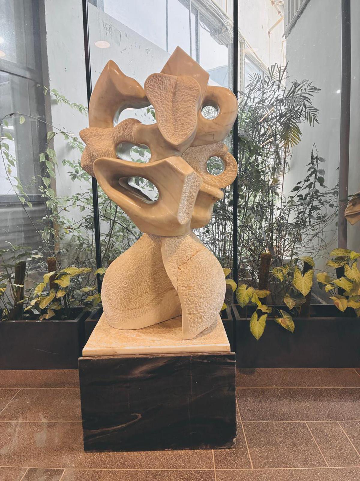 Among its collection of sculptures, the office is also home to Antarshila, the inner stone, a hand-carved marble sculpture crafted from Statuario Gold marble. Conceived as a freestanding installation within the office, the sculpture explores the dialogue between mass and movement through flowing forms and carved voids, realised using traditional stone-carving techniques interpreted through a contemporary lens.