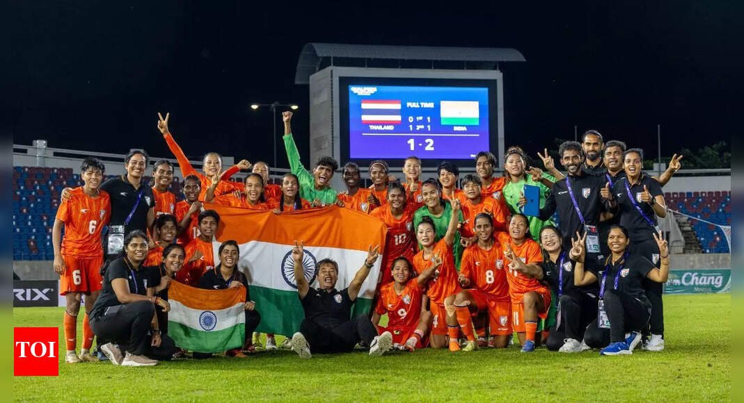 “We did it!” India’s star for the day, Sangita Basfore, could be heard crying to her teammates after the final whistle was blown in the ‘knockout’ Women’s Asian Cup Qualifier fixture at the 700th Anniversary of Chiang Mai Stadium on Saturday.And the tears of joy in the Indian women’s eyes reflected the tall task they achieved in beating world No. 46 Thailand 2-1 in their last match of the qualifiers in Chiang Mai, Thailand, and booking a ticket to the Women’s Asian Cup 2026 in Australia.The two-time World Cuppers — boosted by a huge crowd cheering on the home side — showed their class with their trademark constant press. But the Indian defence stood strong and Basfore pounced on two of the few golden chances created by the visitors — one on either side of the break — to earn a memorable victory, India’s first against the opponents who lie 24 rungs above them on the Fifa ladder.“We played as a team and that’s why I could score the two goals and qualify for the Asian Cup,” Basfore said at the postmatch presentation.The gritty defence led by Shilky Devi Hemam, Sweety Devi, Nirmala Devi and Sanju kept the hosts at bay while Panthoi Chanu under the bar made at least two brilliant saves to keep India in the game. But it was the Indians’ day on the field as after receiving a pass from Anju Tamang outside the Thailand box, Basfore sent in a brilliant volley that left ’keeper Tiffany Sornpao flying but unable to reach the ball.Thailand came back strongly after the break as Chatchawan Rodthong equalised in the 47th minute. However, the Indian attack led by Manisha, Pyari Xaxa and Ratanbala Devi kept raiding the rival box and Basfore rose to the occasion in the 74th minute and nodded in a headed cut-back by Shilky Devi from a corner kick.