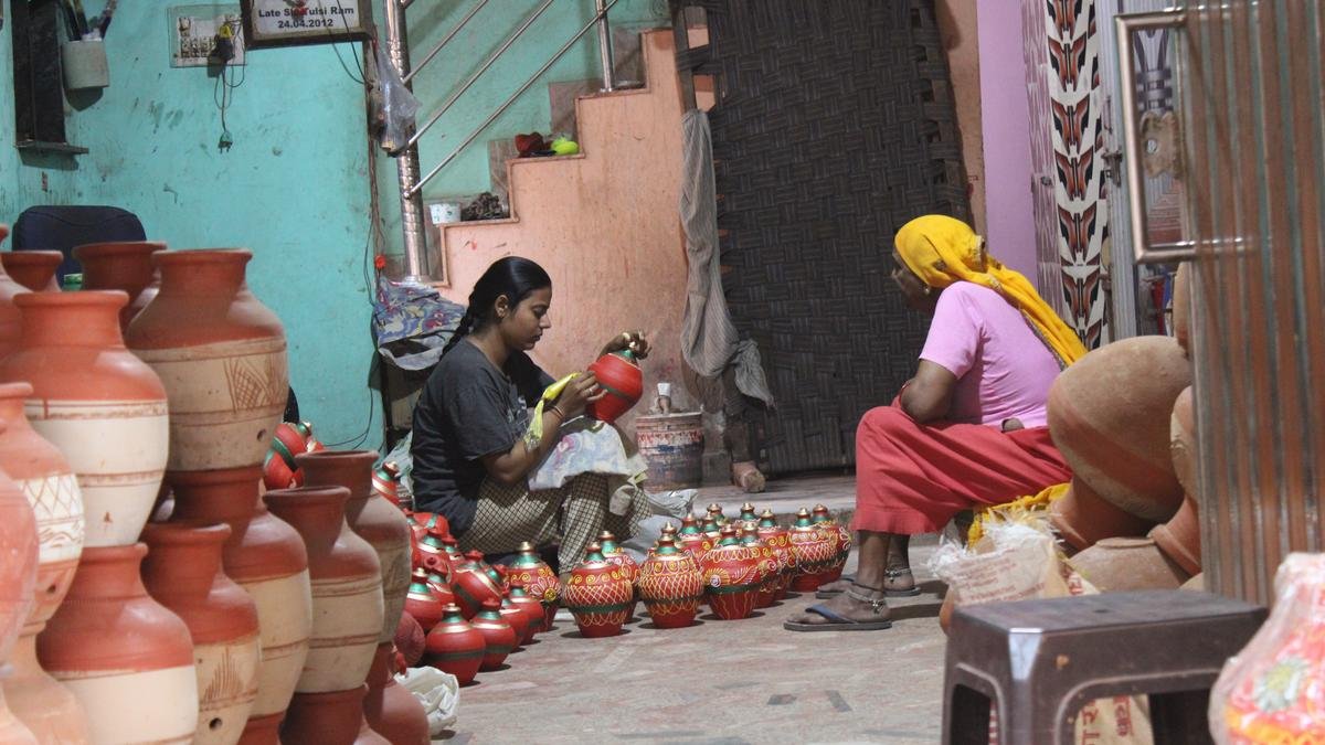 Every home at Potters’ Village in Uttam Nagar, West Delhi, is also a mini shop. Clay products, from gullaks and earthen pots and lamps to cooking and storage utensils, which the artisans chisel, are on display inside and outside the homes.