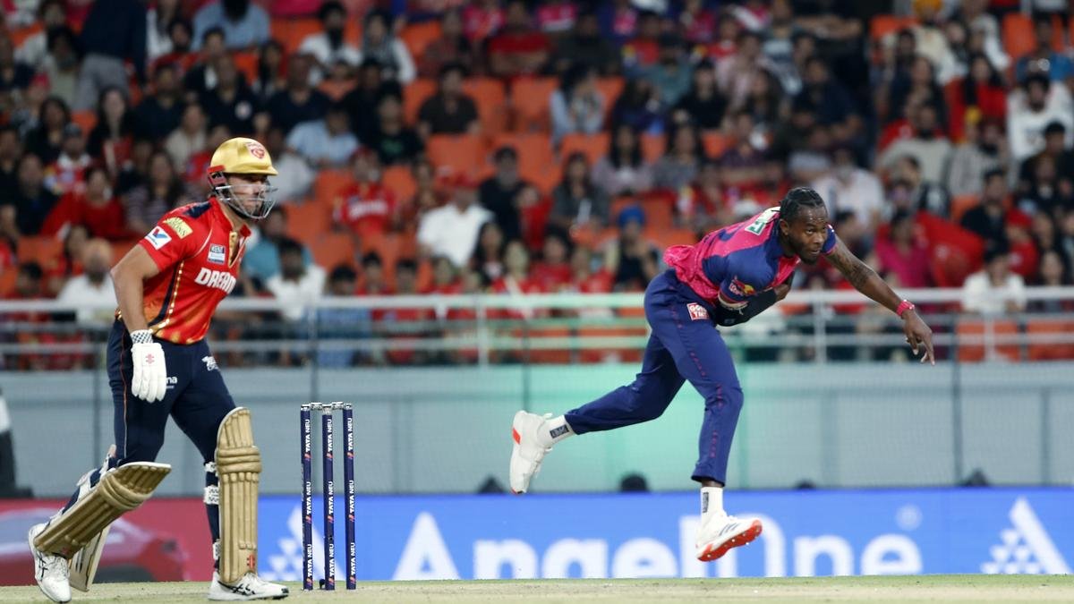 Rajasthan Royals’ Jofra Archer bowls during the Indian Premier League 2025 match against Punjab Kings, at Maharaja Yadavindra Singh International Cricket Stadium, Mullanpur, in Chandigarh.