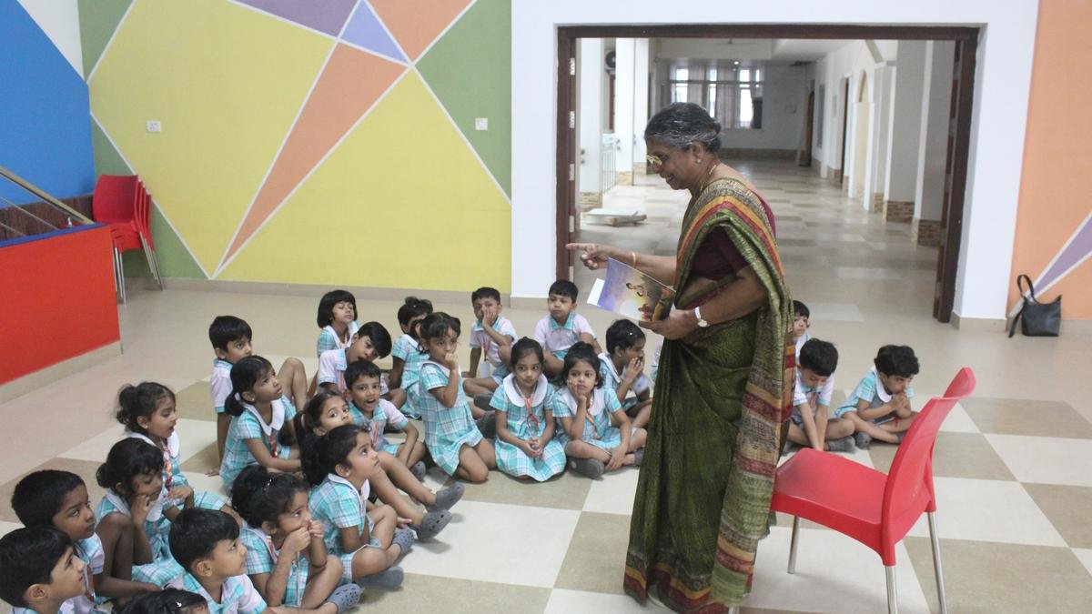 For 76-year-old Monica Thomas, a retired professor of St Teresa’s College, Kochi, the visit to Rajagiri Kindergarten, a part of Rajagiri Public School, Kalamassery, was a step back in time. “It was an interaction with children after so many years. So when I got a chance I was excited to go to the event. My primary motive was to spend some time in the company of the little children. I didn’t know how they would find the storytelling. But they responded very well and so I am very happy!” says Monica who retired in 2004. She was among the handful of grandmothers invited to the school as part of their Reading Week celebrations.