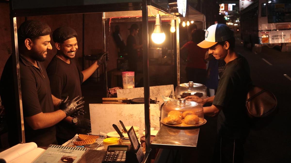 The street food platoon outside MG College at Kesavadasapuram, Thiruvananthapuram, resembles a buffet dinner that comes alive at dusk. From tangy, mouth-watering pani puris to piping hot waffles doused in chocolate sauce, this street serves flavours from all corners of the world.