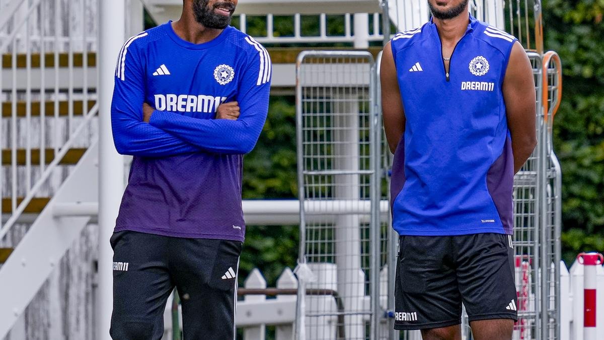 Arshdeep Singh and Jasprit Bumrah during a training session at Beckenham on Thursday.