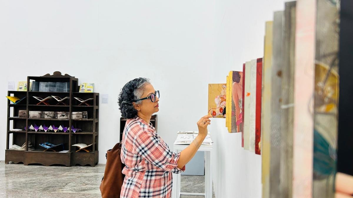 At the Unshelving Memories art exhibition currently on at the College of Fine Arts (CFA), Thiruvananthapuram, 61 artists practising book art, a discipline where works are presented structurally as books, have come together. Each book varies in texture, concept, components and installation, showcasing ‘text, images, collages, or sculptural interventions, often defying established norms.’