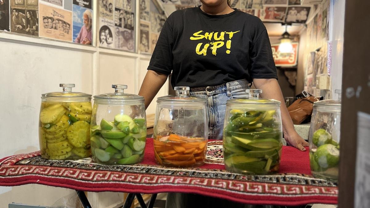 Meenakshi Chand at her store, Uppilit, which sells brined vegetables and fruits, in Thiruvananthapuram
