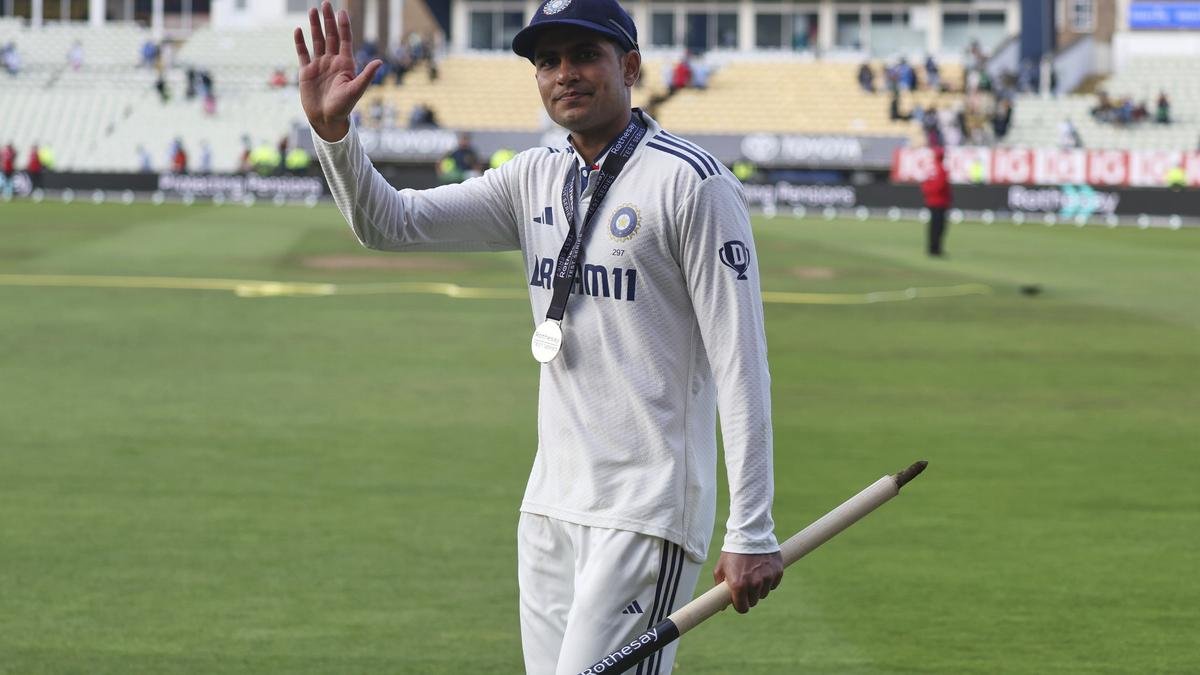 India’s captain Shubman Gill waves to the fans after their win against England on day five of the second cricket test match at Edgbaston in Birmingham, England, Sunday, July 6, 2025.