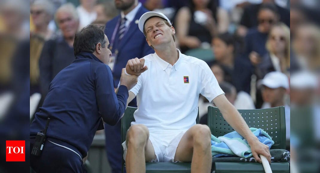 London: Jannik Sinner cancelled his scheduled practice session at Aorangi Park on Tuesday amid injury worries ahead of his Wimbledon quarterfinal clash. The world No. 1 had undergone an MRI earlier in the day.It is as yet unclear if the Italian chose to practice at another facility, away from cameras, to measure the hit on the elbow or if he decided to rest. Sinner is expected to take the court against American Ben Shelton in a last-8 clash on Court No. 1 on Wednesday.The 23-year-old, who slipped in the opening game of his fourth-round match against the 34-year-old Grigor Dimitrov, used his right hand to stall the fall and appeared to have hurt his elbow in the process.The three-time Grand Slam winner, who called for medical attention at 2-3 in the second set, had a providential escape when Dimitrov was forced to retire from the match with an injured pectoral muscle. Sinner looked at the video of the fall and thought it didn’t look bad, though he felt the elbow quite a bit during the match. The world No. 1 had cut pace in the fourth-round, the average speed of his first serve in the match had dipped by five kmph to 197.