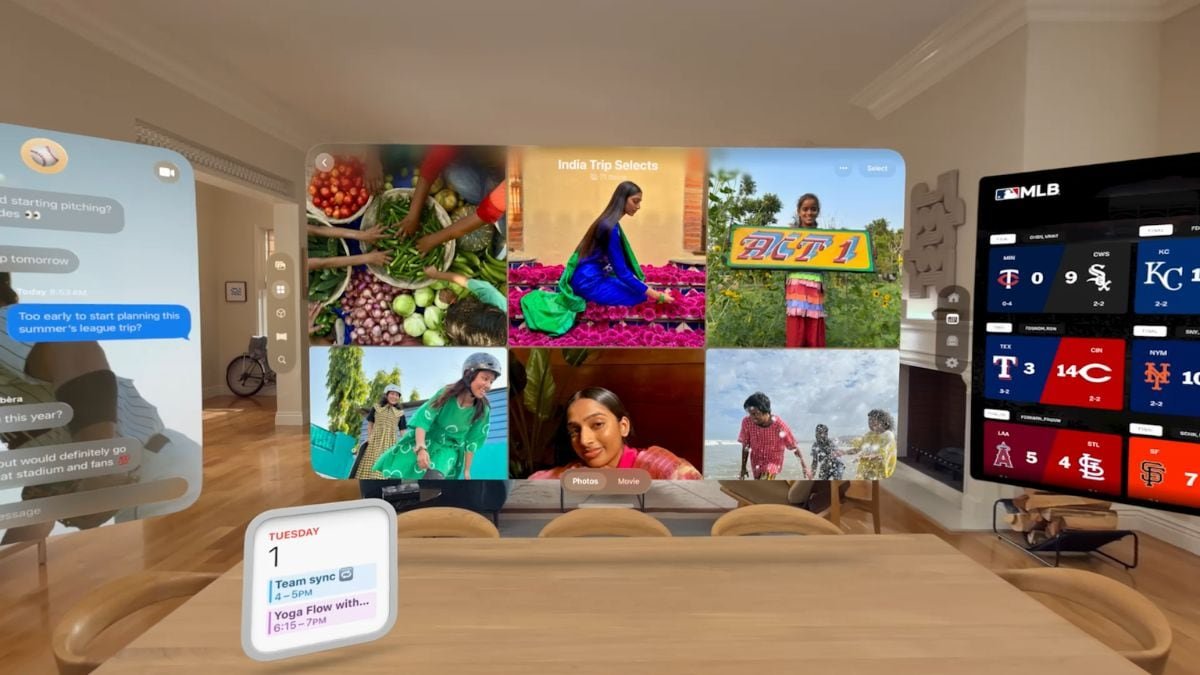 Vision Pro users can also decorate their mixed-reality spaces with widgets by adding spatial photos, clocks with unique watch faces, and quick access to playlists and songs on Apple Music.